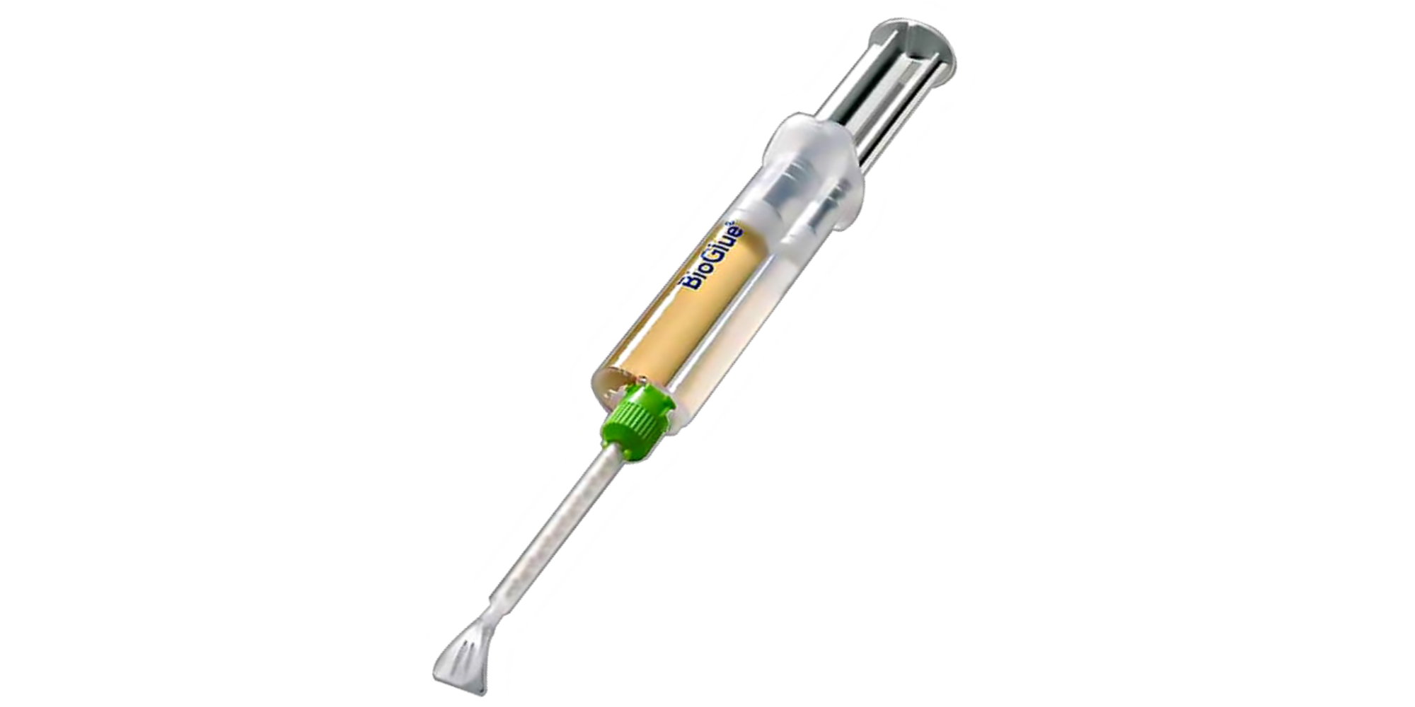 Убедитесь, что BioGlue® остается на нужном месте. Наносите материал тонким, равномерным слоем (насколько возможно). Чем тоньше слой, тем он более гибкий и быстрее рассасывается.