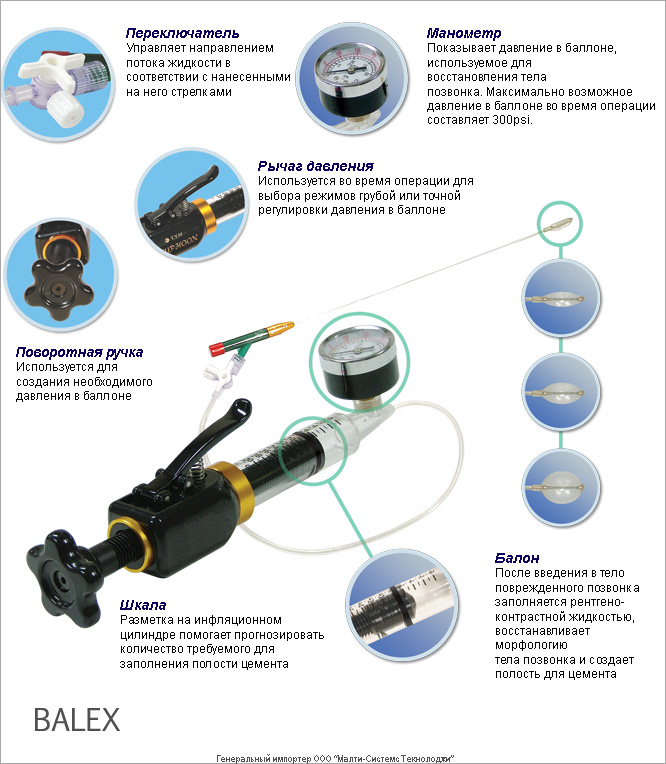 Balex® — система инструментария с баллонным катетером, предназначенная для выполнения процедуры кифопластики при компрессионном переломе тела позвонка методом введения костного цемента в полость, созданную баллоном катетера.